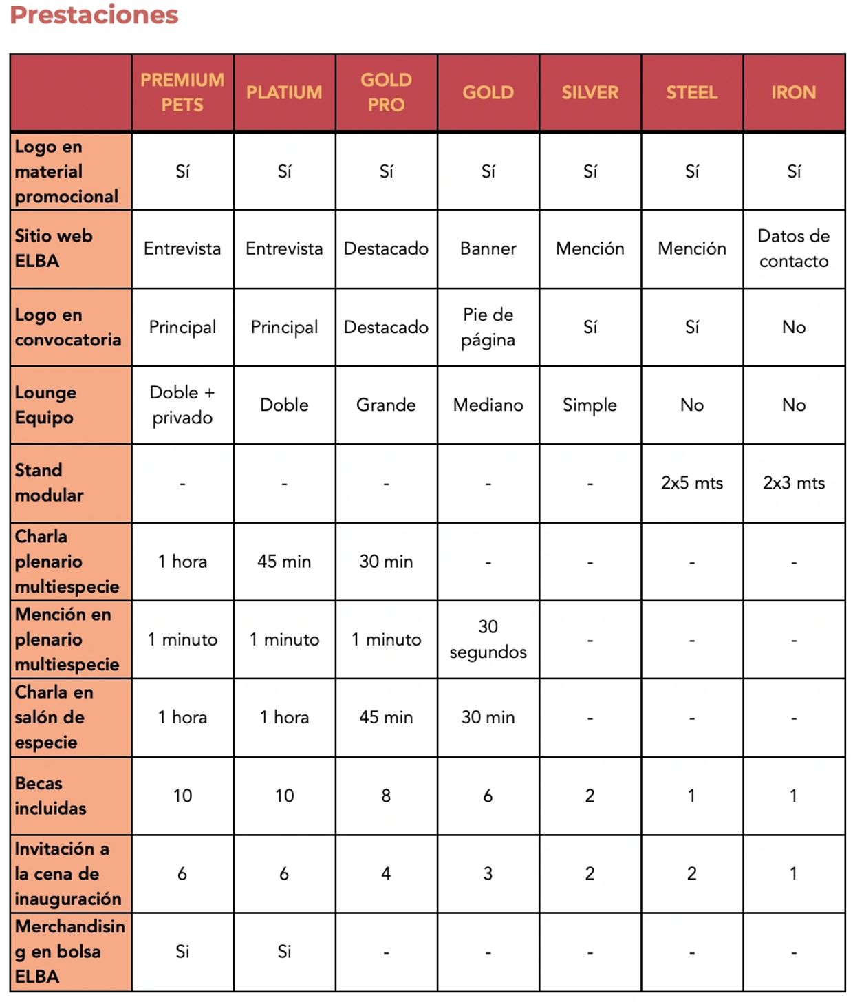 Usted recibirá de acuerdo a su categoría de auspicio: